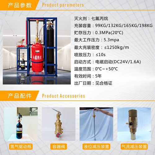 外貯壓(備壓)式七氟丙烷氣體滅火系統(tǒng)使用的場合與貯壓式七氟丙烷氣體滅火系統(tǒng)相同。系統(tǒng)組成及原理上有所不同,貯壓式七氟丙烷氣體滅火系統(tǒng)與高壓氮?dú)赓A存在同一個(gè)容器內(nèi),藥劑是靠藥劑瓶內(nèi)高壓筑氣輸送到防護(hù)區(qū)的:外貯壓(備壓)式七氟丙烷氣體滅火系統(tǒng)藥劑和高壓氮?dú)夥珠_貯存在不同的容器內(nèi),有火情時(shí)氮?dú)鈫悠拷M接收到滅火控制器的信號釋放氮?dú)?,氮?dú)怛?qū)動瓶組為藥劑輸送到防護(hù)區(qū)提供穩(wěn)定持久的壓力源。